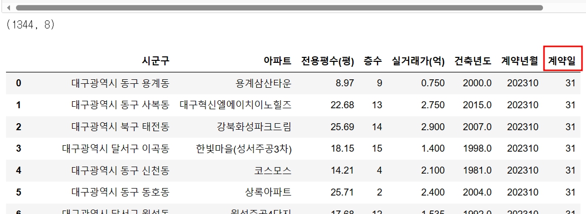 아파트 총 1,344건이 대구에서 10월달에 계약됐네요.
