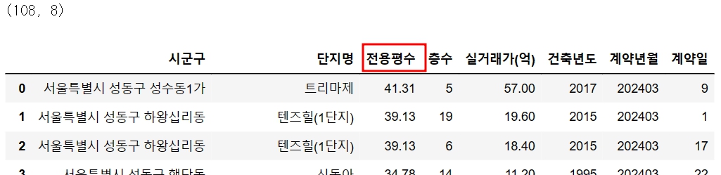 그리고 전용평수 높은 순으로도 나열했으니까요,