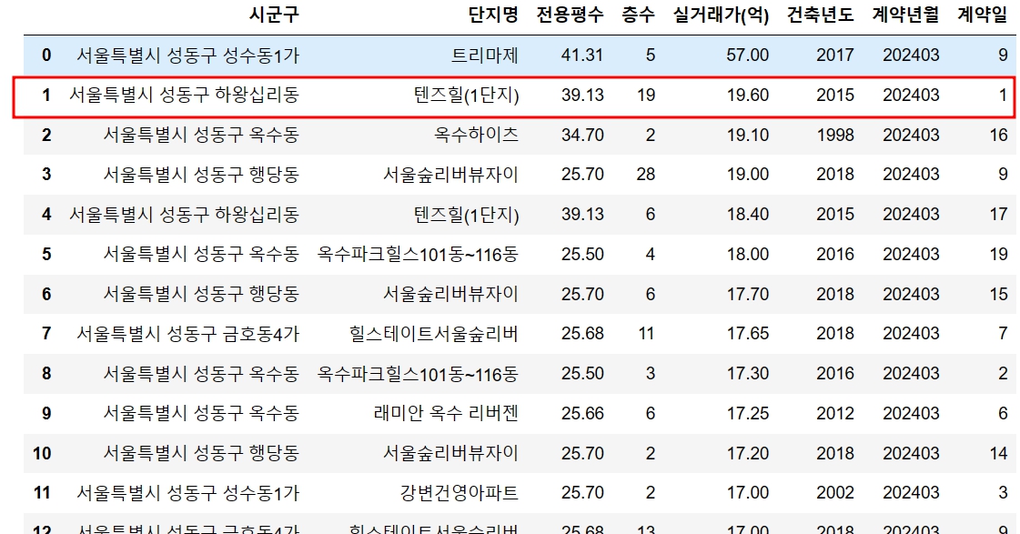 서울 " 성동구 " 에서 최근 3월에 계약된 모든 아파트 시세/평수 확인해드릴게요~