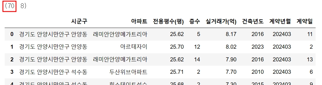 " 안양시 만안구 " 에서 3월달에 총 70건의 아파트가 계약됐네요.