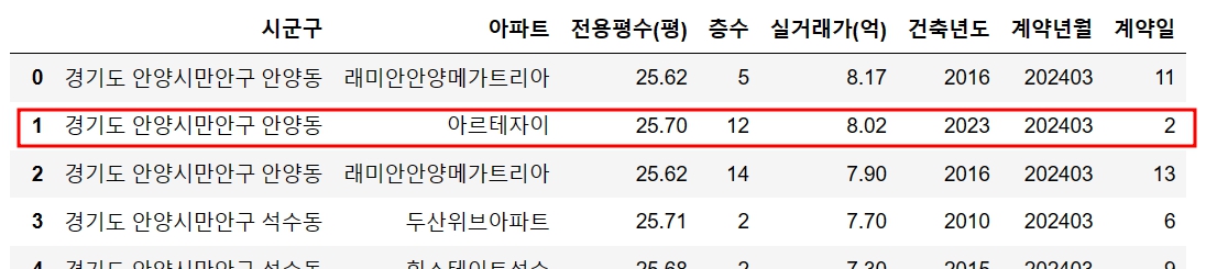 그리고 전용평수 높은 순으로도 나열했으니까요,