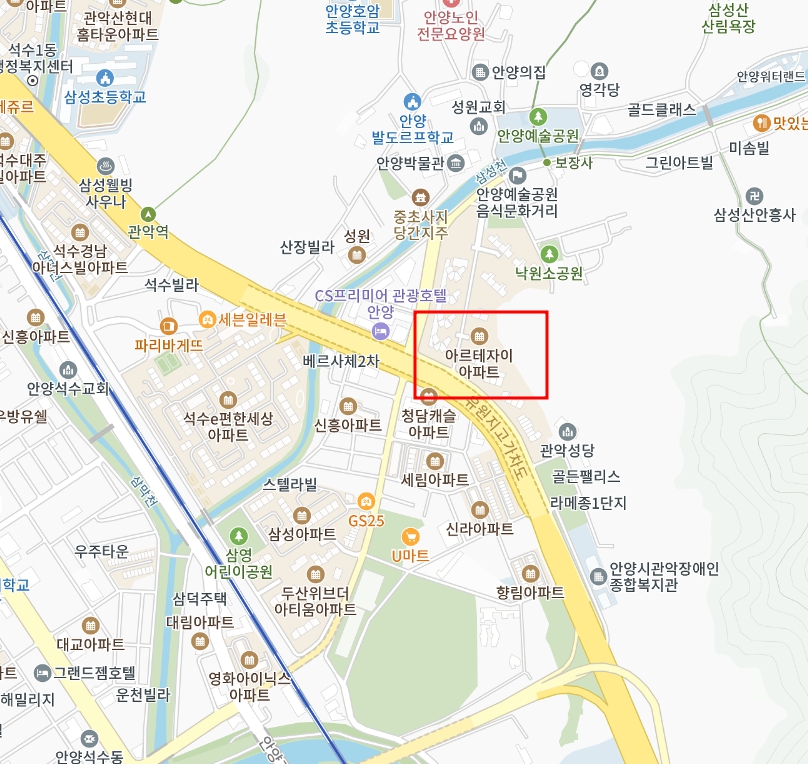 삼성천과 안양예술공원도 근처에 있고,