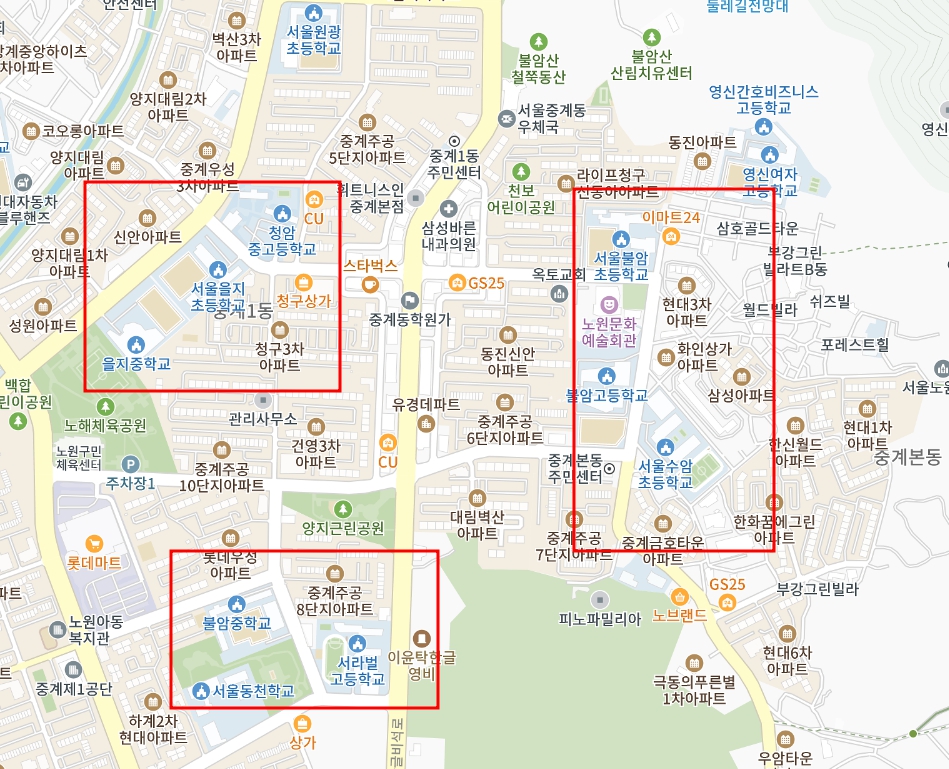 많은 사람들이 아시겠지만, 서울의 3대 학군 지역인 "노원구 중계동 " 이죠.