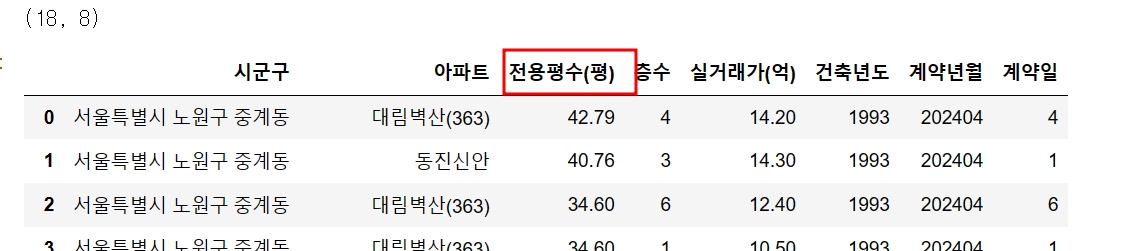 4월초 (1일 ~ 10일까지) 아파트 총 18건이 계약되었네요.