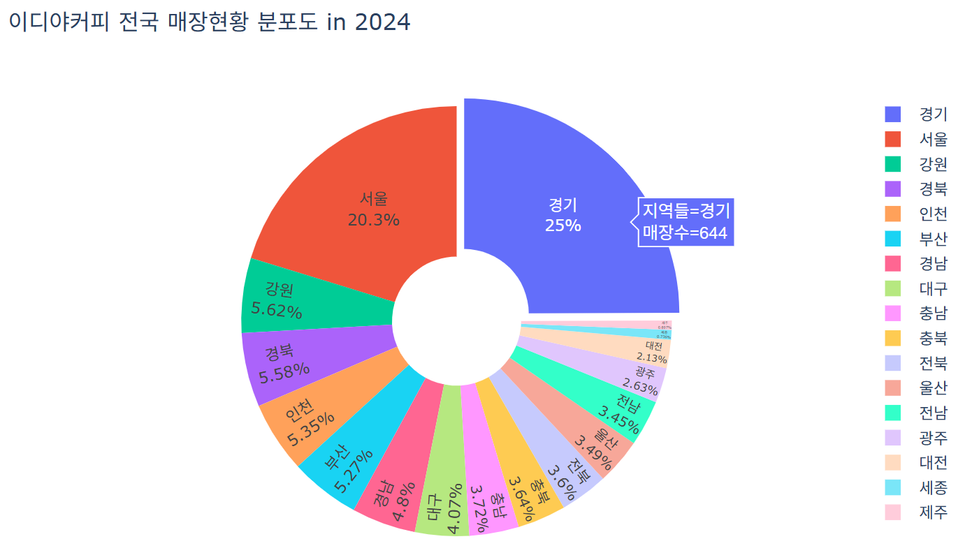 아래 그래프는 이디야커피(Ediya Coffee) 2024년 전국 매장 분포도를 보여줍니다.